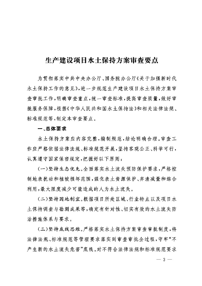 水利部辦公廳關(guān)于印發(fā)生產(chǎn)建設(shè)項目水土保持方案審查要點的通知